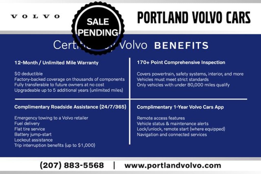 This Certified Volvo Comes with 5 years (from original in-service date) & Unlimited miles of worry free driving. Also a Car fax vehicle history report,A 170+ Point Inspection, Roadside Assistance and a Zero Deductible for all warranty visits.