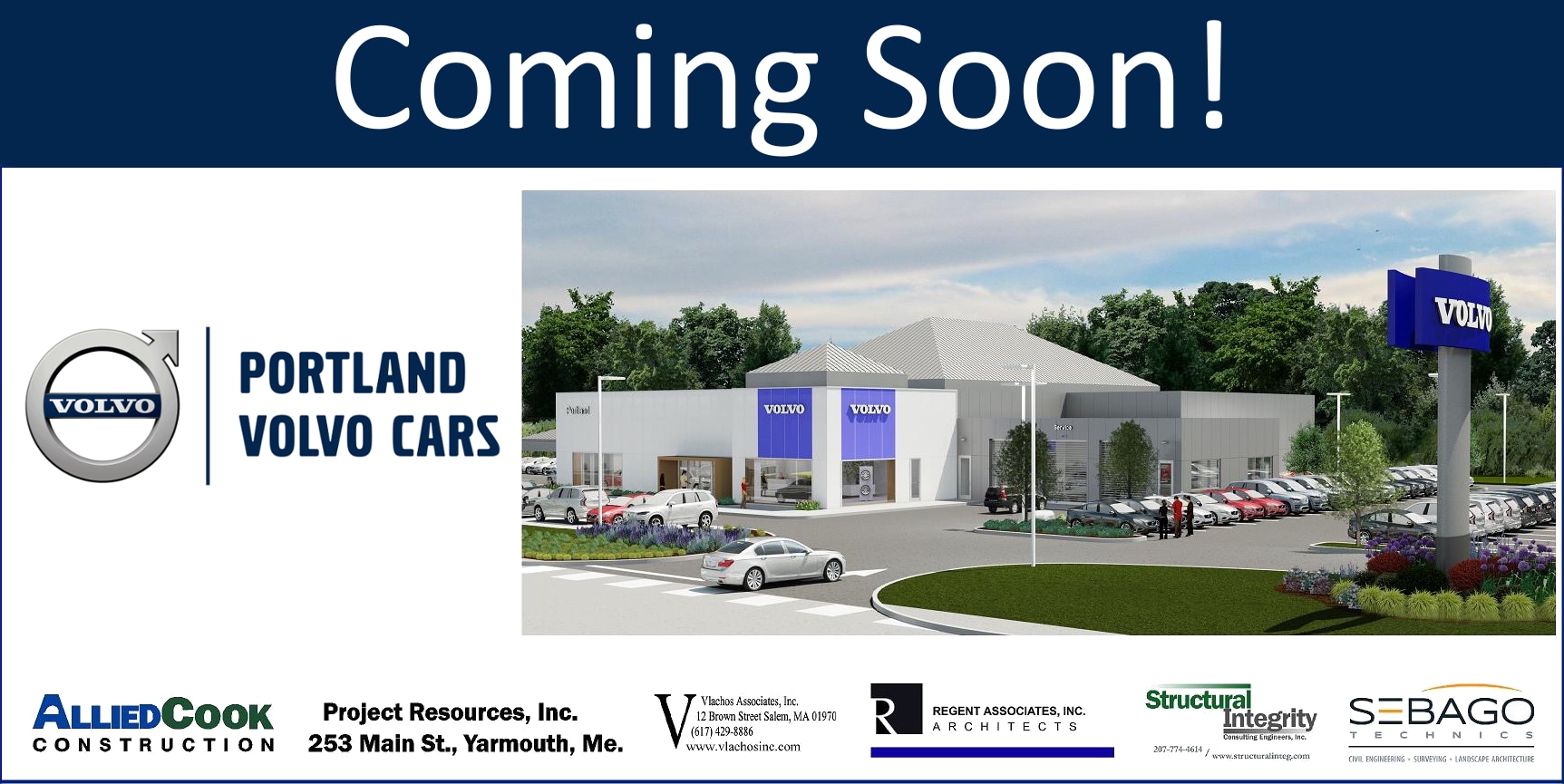 On Thursday, November 29th, Portland Volvo Cars, located at 9 U.S. Route 1, in Scarborough, held a groundbreaking ceremony to celebrate the building of a new facility. The new dealership will be state-of-the-art in terms of efficiency, technology, and customer service potential. At the ceremony were owner, Bill Waldron, dealership staff, and representatives of Allied Cook Construction, which will oversee the project.